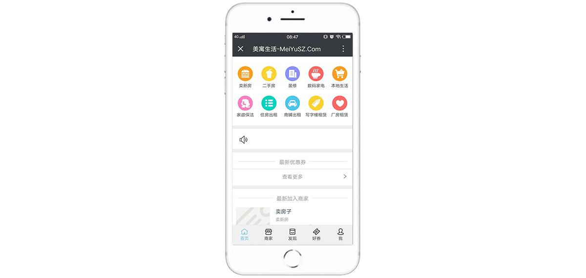 美寓生活是一個(gè)同城優(yōu)惠券發(fā)布平臺(tái),商家可以發(fā)布折扣券、代金券、禮品券、團(tuán)購(gòu)券、紅包券等通用優(yōu)惠券,會(huì)員可以在線(xiàn)領(lǐng)取商家優(yōu)惠券。
